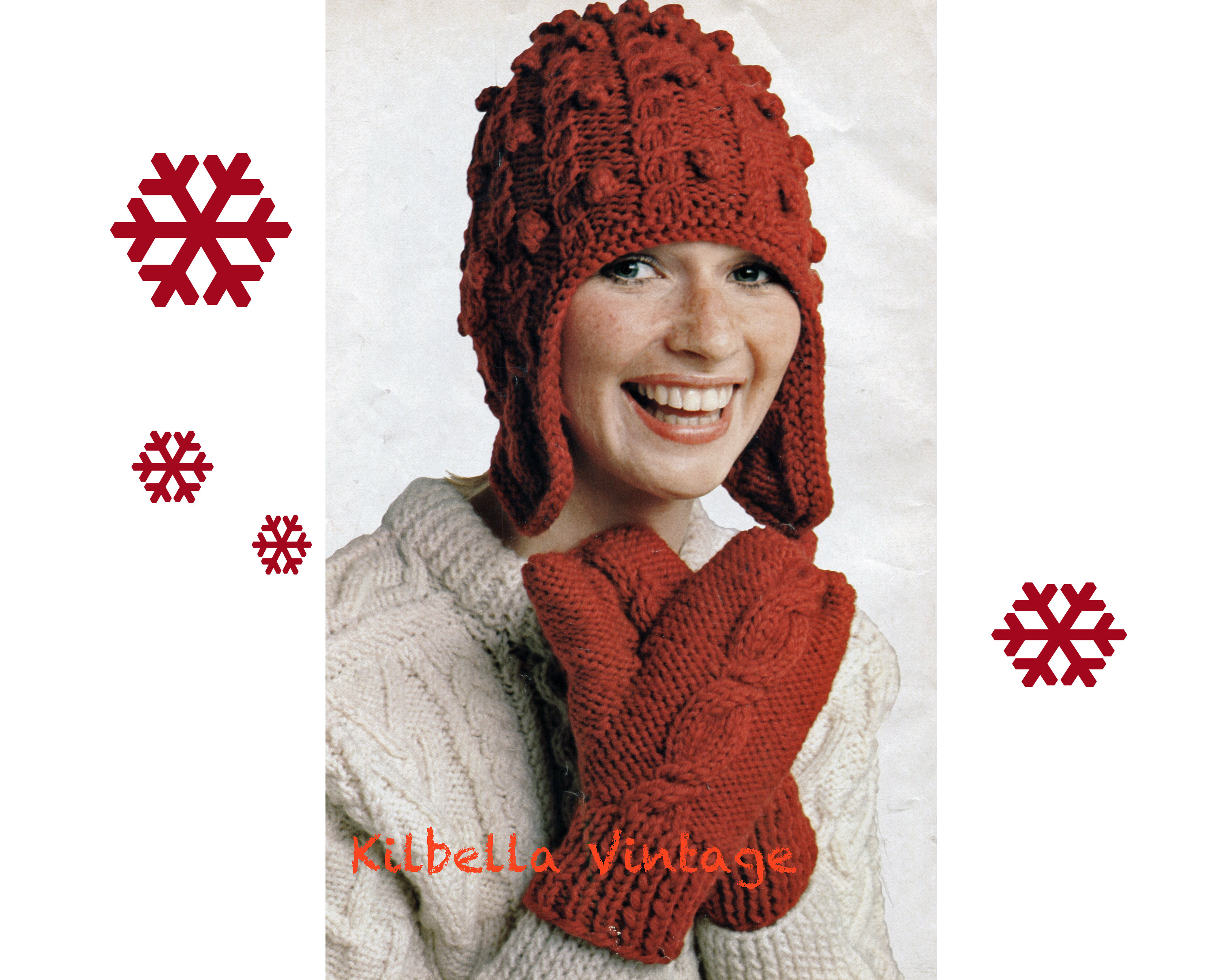 Womens Beanie Hat Knitting Pattern Cable Bobbles Ear Flap Etsy Canada